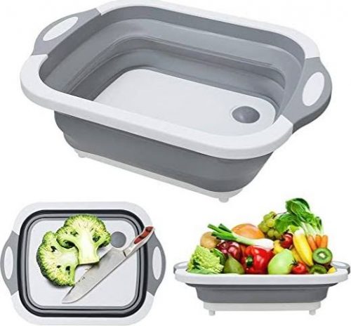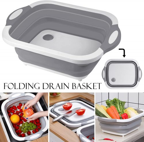 - Multifunctional: Combines a chopping board, vegetable washing drain basket, and storage basket in one convenient kitchen gadget.