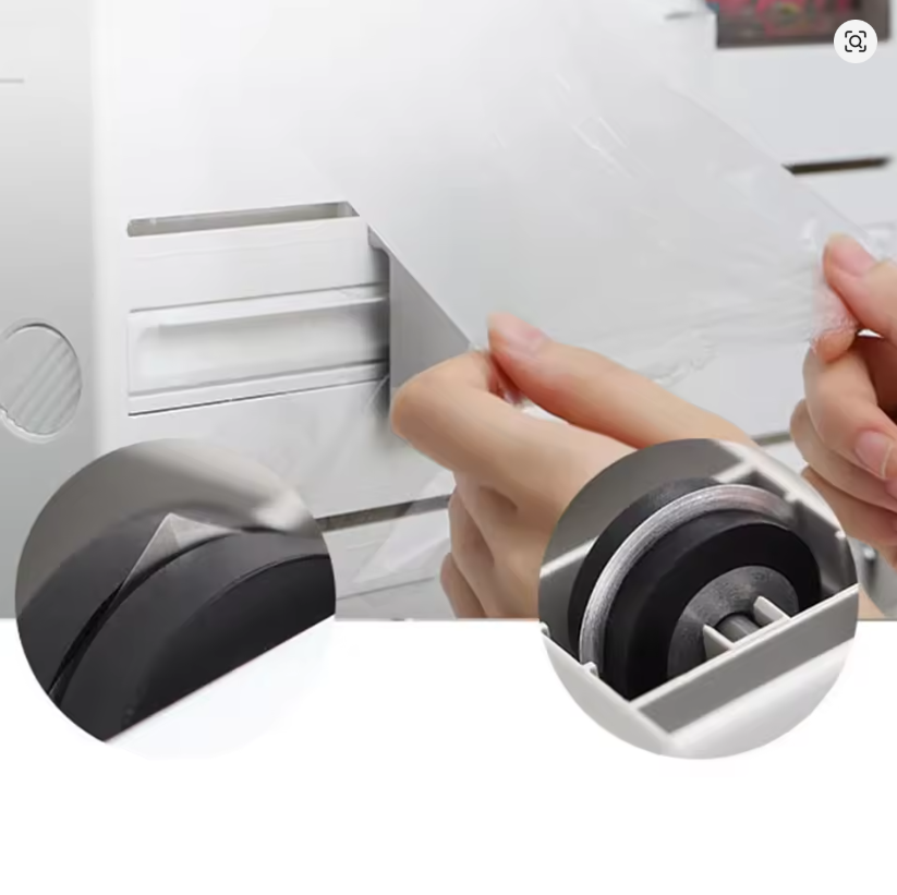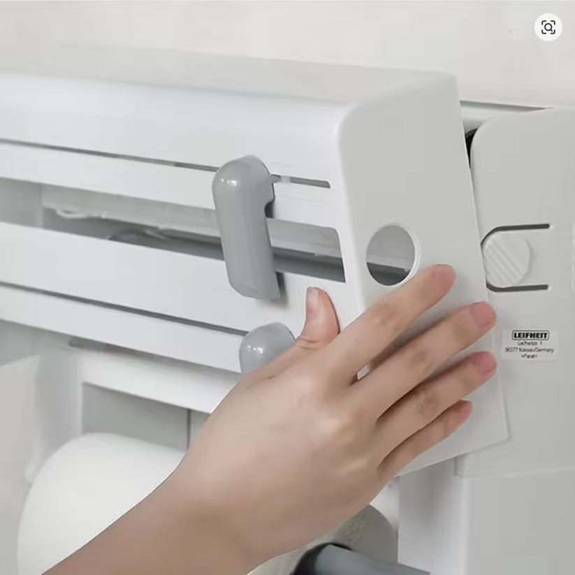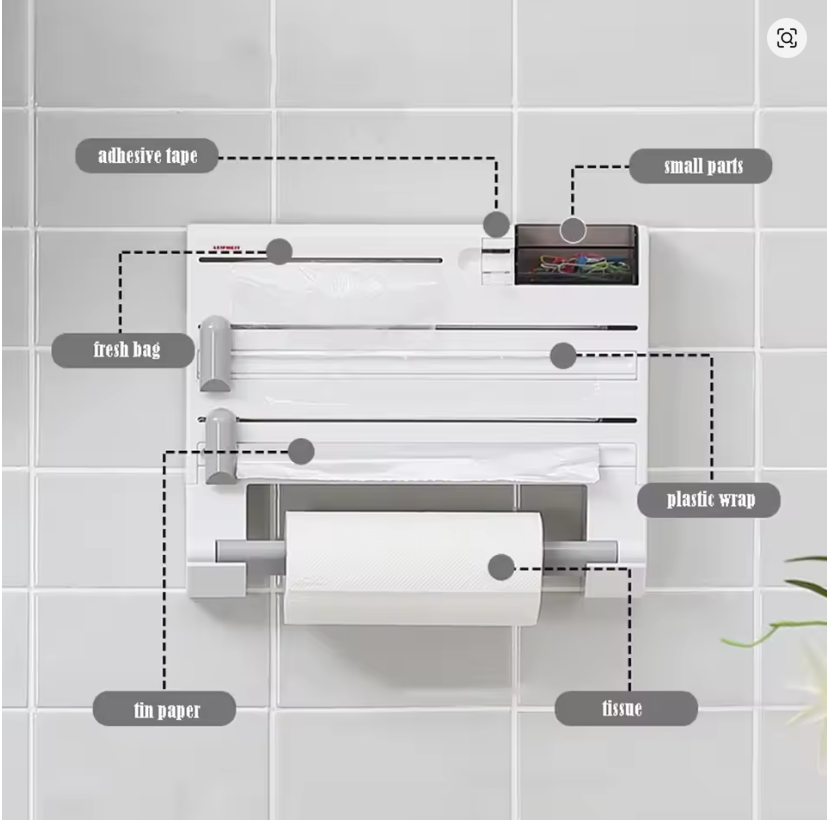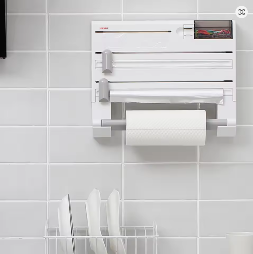 6-in-1 Plastic Wrap & Paper Storage Rack | Wall-Mounted Kitchen Organizer with Cutter | Multi-Purpose Compact Dispenser