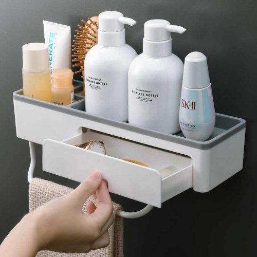 Bathroom Shelf Shower Rack with Drawer | Wall-Mounted Basket Organizer & Towel Rack | No-Drill Installation