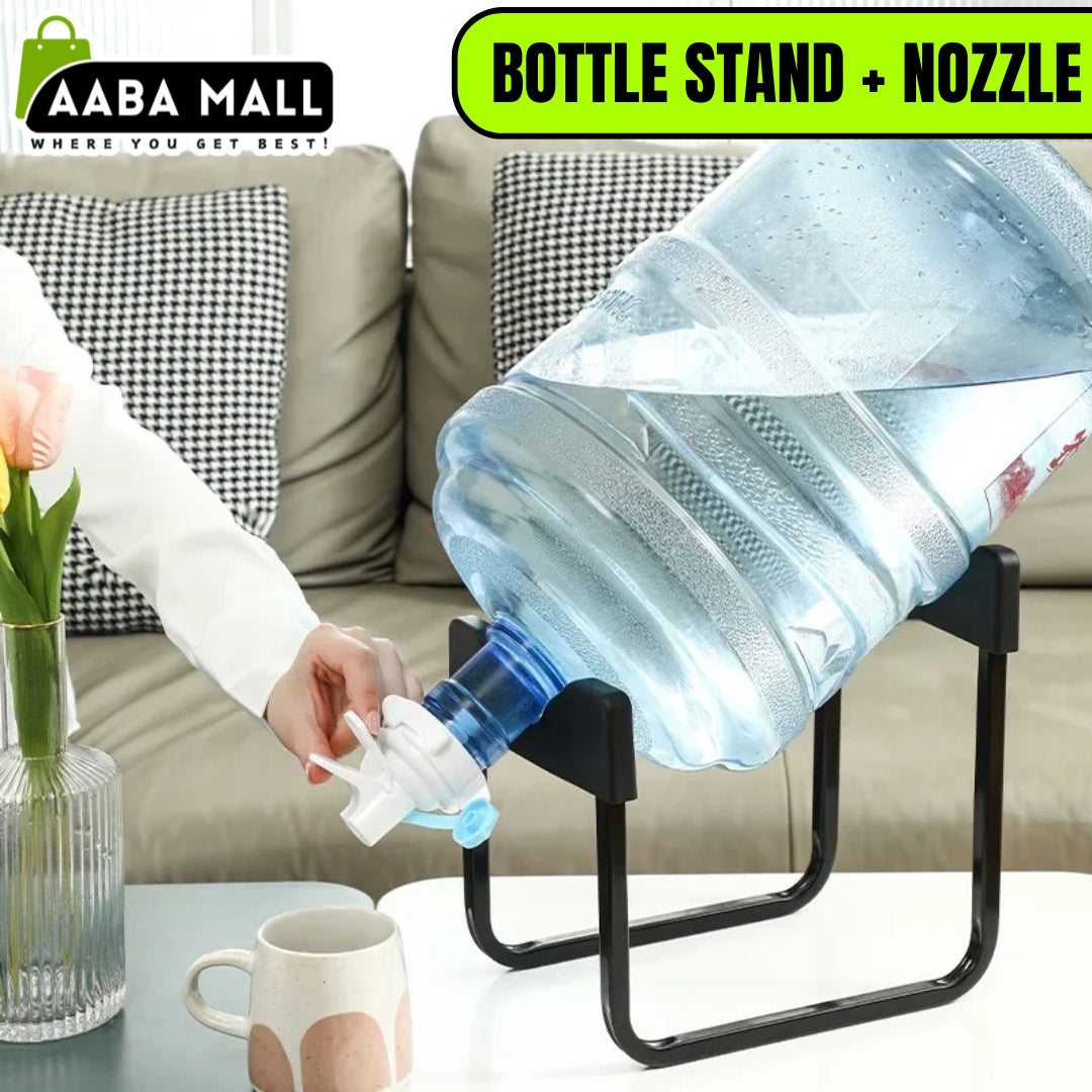 Water Bottle Stand Metal Rack Dispenser Water Jug Holder Non-Screw with Water Tap